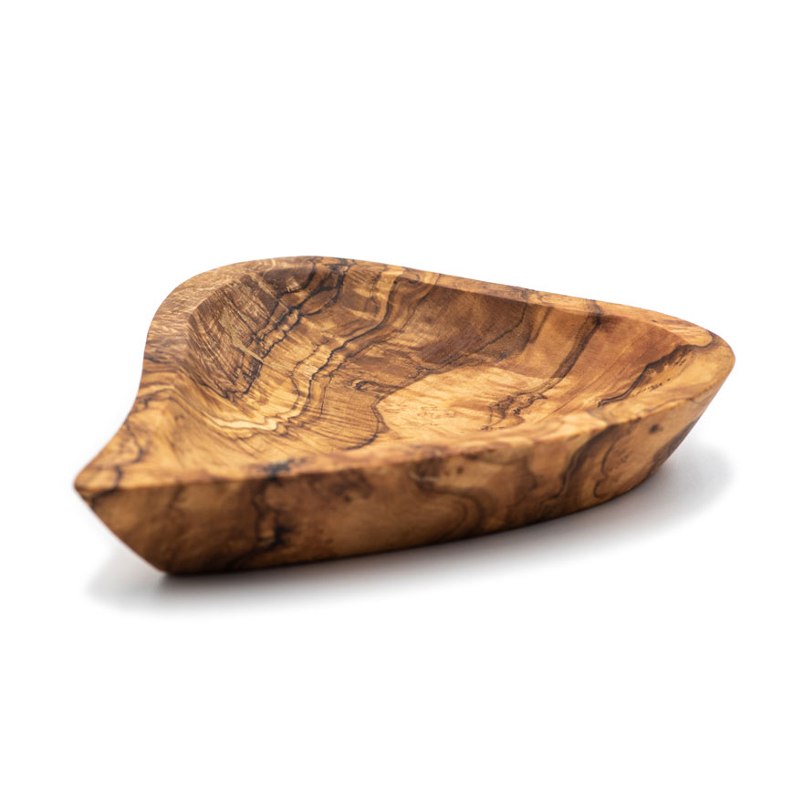 Plato de aperitivo curvo de dos hoyos de madera de olivo